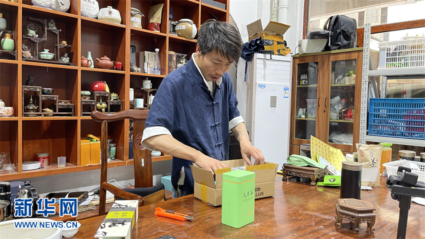 2020年前后,楊軍昌開始在短視頻平臺(tái)上直播帶貨,所賣貨品多是新昌本地的茶葉等農(nóng)產(chǎn)品。茶葉產(chǎn)品銷售淡季,他開始做自己的短視頻賬號(hào),逐漸成為網(wǎng)友們熟悉的“帥農(nóng)鳥哥”。新華網(wǎng) 駱?biāo)加?文 馬江/圖