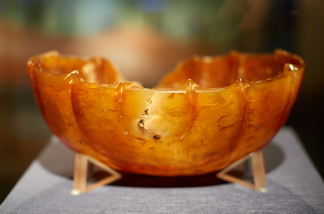 圖為青海省都蘭縣熱水墓群血渭一號墓出土的瑪瑙十二曲長杯。中國絲綢博物館供圖