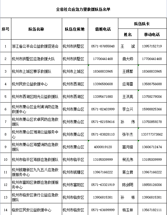 浙江省防指公布205支社會(huì)應(yīng)急力量救援隊(duì)伍聯(lián)系方式