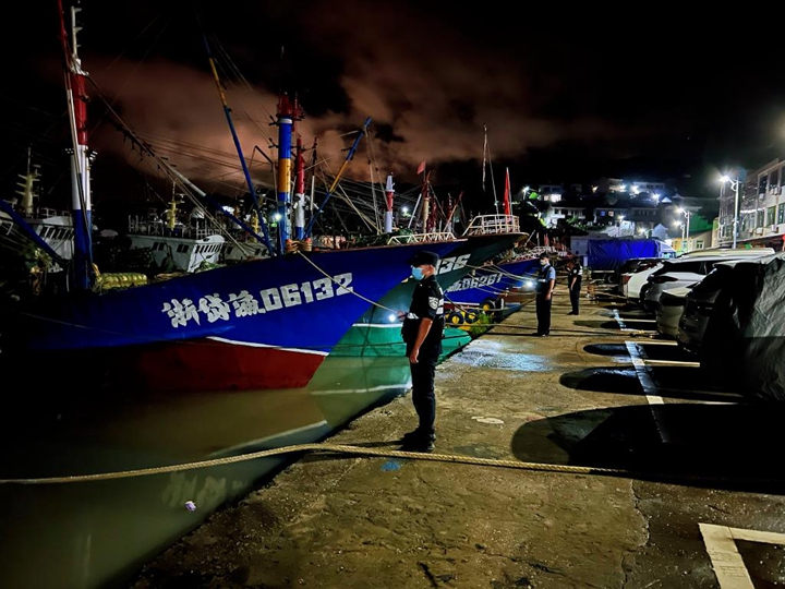 9月3日晚,岱山縣公安檢查碼頭漁船歸港避風(fēng)情況。(受訪者供圖)