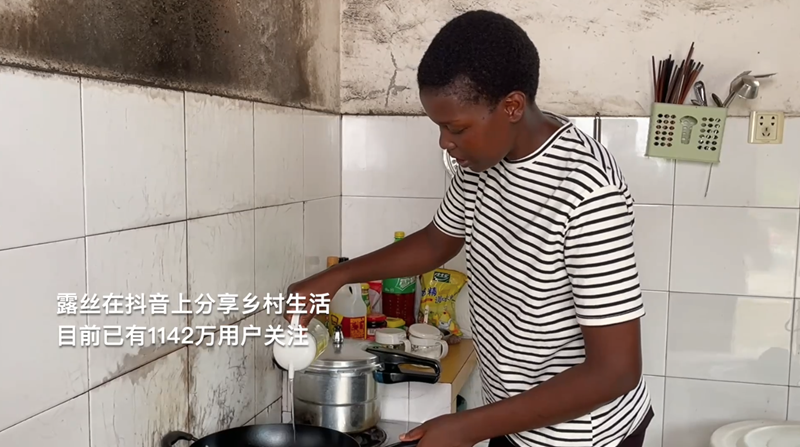 來自烏干達(dá)的女孩露絲是嫁入中國農(nóng)村的“洋媳婦”。她在短視頻平臺記錄和分享自己的鄉(xiāng)村生活,如今已經(jīng)有1142萬用戶關(guān)注。