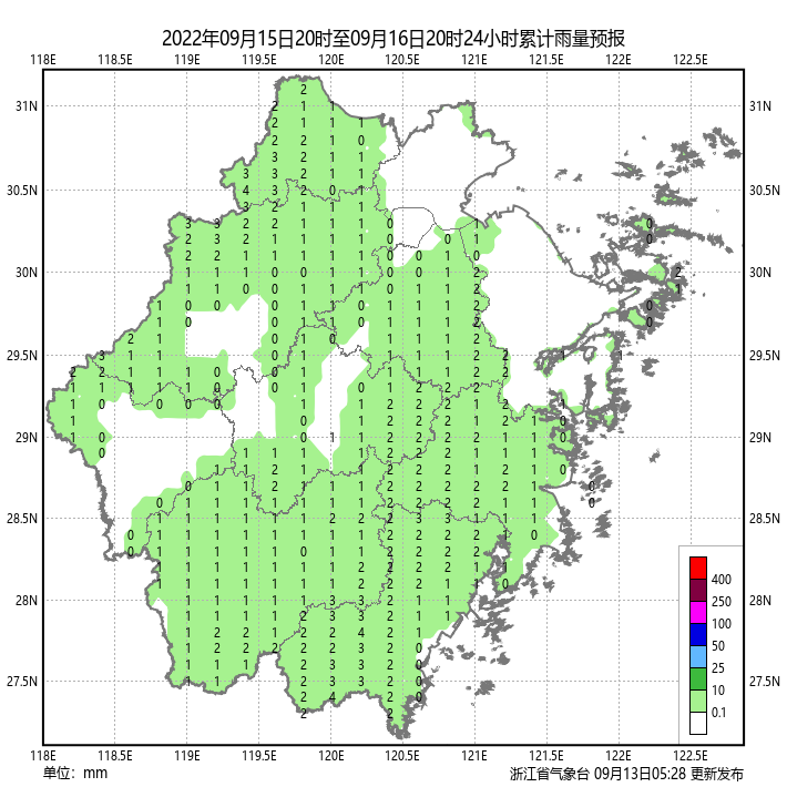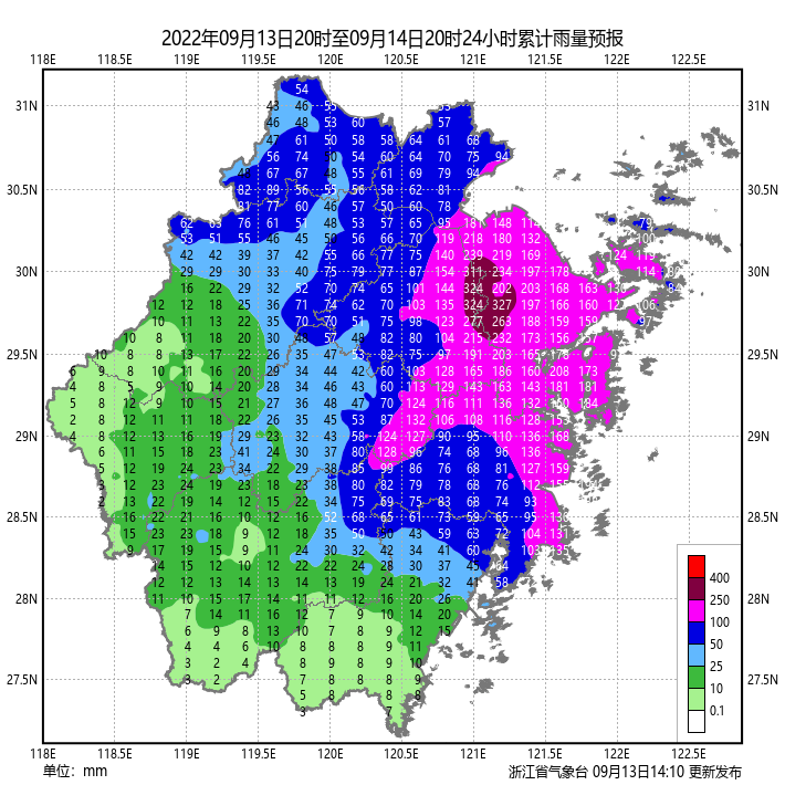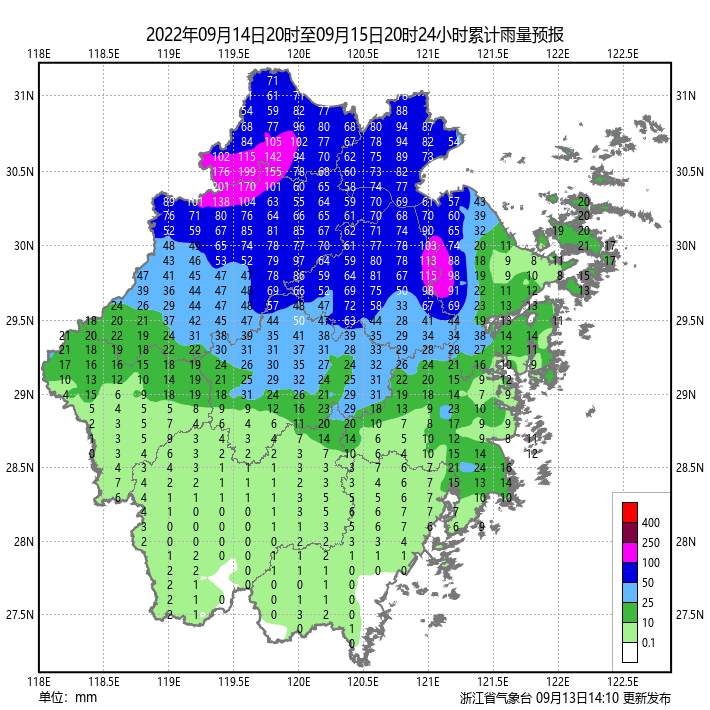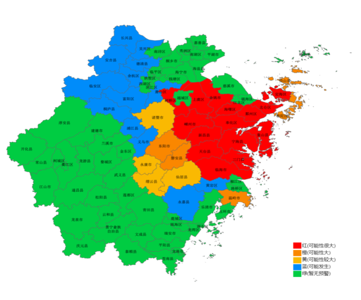 浙江省水利廳、浙江省氣象局17時(shí)01分聯(lián)合發(fā)布山洪災(zāi)害紅色預(yù)警:預(yù)計(jì)13日20時(shí)至14日20時(shí),海曙區(qū)、北侖區(qū)、鄞州區(qū)、奉化區(qū)、象山縣、寧??h、余姚市、柯橋區(qū)、上虞區(qū)、新昌縣、嵊州市、定海區(qū)、三門縣、天臺(tái)縣、臨海市發(fā)生山洪災(zāi)害可能性極大(紅色預(yù)警),磐安縣、東陽(yáng)市、普陀區(qū)、岱山縣、溫嶺市發(fā)生山洪災(zāi)害可能性大(橙色預(yù)警),諸暨市、永康市、仙居縣、縉云縣發(fā)生山洪災(zāi)害可能性較大(黃色預(yù)警),蕭山區(qū)、余杭區(qū)、富陽(yáng)區(qū)、臨安區(qū)、桐廬縣、永嘉縣、吳興區(qū)、德清縣、長(zhǎng)興縣、安吉縣、浦江縣、義烏市、黃巖區(qū)可能發(fā)生山洪災(zāi)害(藍(lán)色預(yù)警)。請(qǐng)密切關(guān)注天氣形勢(shì)及雨水情變化,注意防范強(qiáng)降水引發(fā)的山洪災(zāi)害。