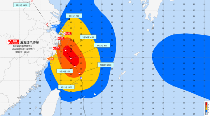 浙江省海洋監(jiān)測(cè)預(yù)報(bào)中心發(fā)布風(fēng)暴潮橙色警報(bào)、海浪紅色警報(bào)