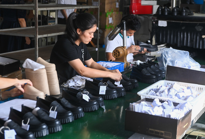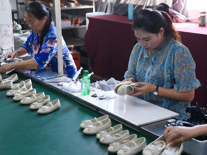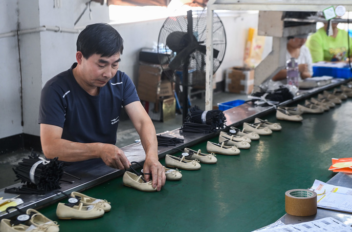 9月27日,在諸暨市姚江鎮(zhèn)一家鞋業(yè)企業(yè)內,工人在查驗剛生產完成的外貿鞋。