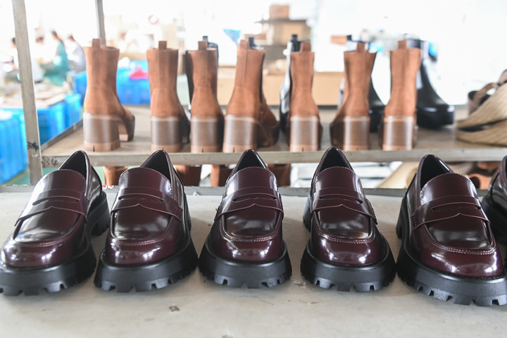 諸暨市姚江鎮(zhèn)一家鞋業(yè)企業(yè)內剛生產完成的外貿鞋(9月27日攝)。