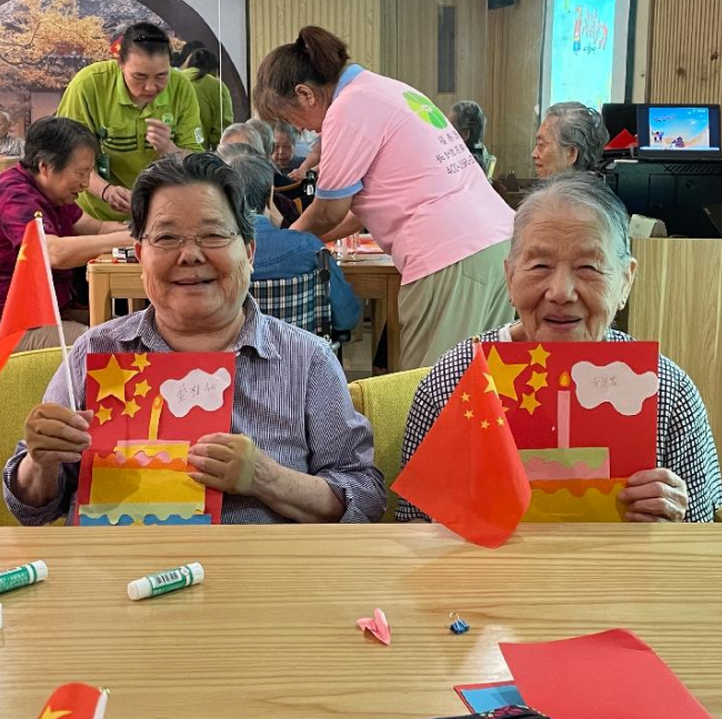 10月1日,居住翠苑街道居家養(yǎng)老服務(wù)中心的“老寶貝”們制作的“紙質(zhì)蛋糕”。(受訪者供圖)