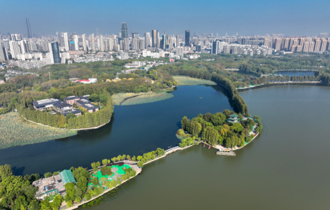 2日一早,武漢市東湖一角的華僑城生態(tài)濕地公園漸漸蘇醒。湖面泛起陣陣漣漪,水草搖曳生姿,岸邊樹(shù)林里不時(shí)傳來(lái)數(shù)聲?shū)B(niǎo)鳴,綠道騎行的追風(fēng)少年,涼亭吹奏的退休老人,構(gòu)成一幅人與自然和諧共生的風(fēng)光圖。