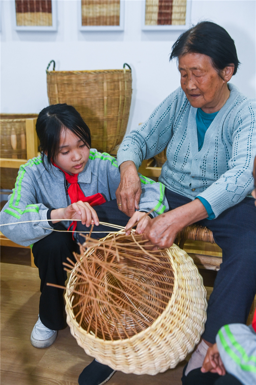 近年來,泉慶村的非遺柳編工坊定期在周邊學(xué)校開展非遺柳編課程,傳承當(dāng)?shù)靥厣沁z技藝。