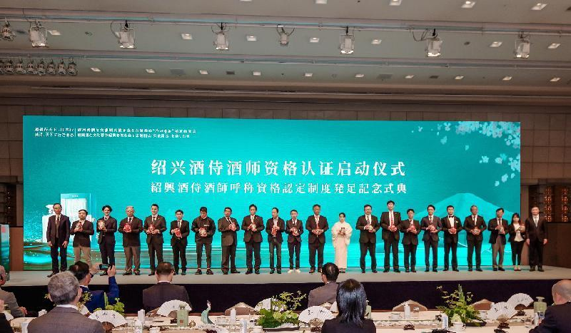 為推動紹興黃酒走向世界,挖掘紹興酒的市場價值和文化價值,現(xiàn)場舉行了紹興酒侍酒師資格認證啟動儀式。紹興市黃酒行業(yè)協(xié)會常務(wù)副會長孫愛保、紹興市黃酒行業(yè)協(xié)會副會長胡志明向日本首批二十位侍酒師頒發(fā)入門紀念酒。