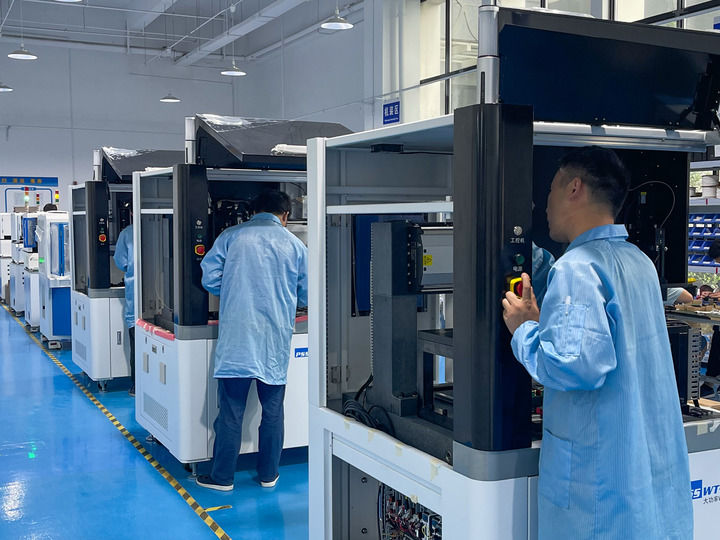 這是武漢普賽斯電子股份有限公司的生產(chǎn)人員對(duì)大功率VCSEL晶圓測(cè)試系統(tǒng)進(jìn)行裝配調(diào)試(2023年5月10日攝)。新華社發(fā) 鐵藝凝 攝