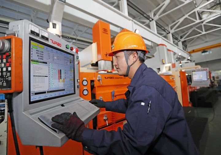 這是寧波臻至機(jī)械模具有限公司的工人在加工模具(資料照片,2021年3月攝)。新華社發(fā) 王鵬 攝