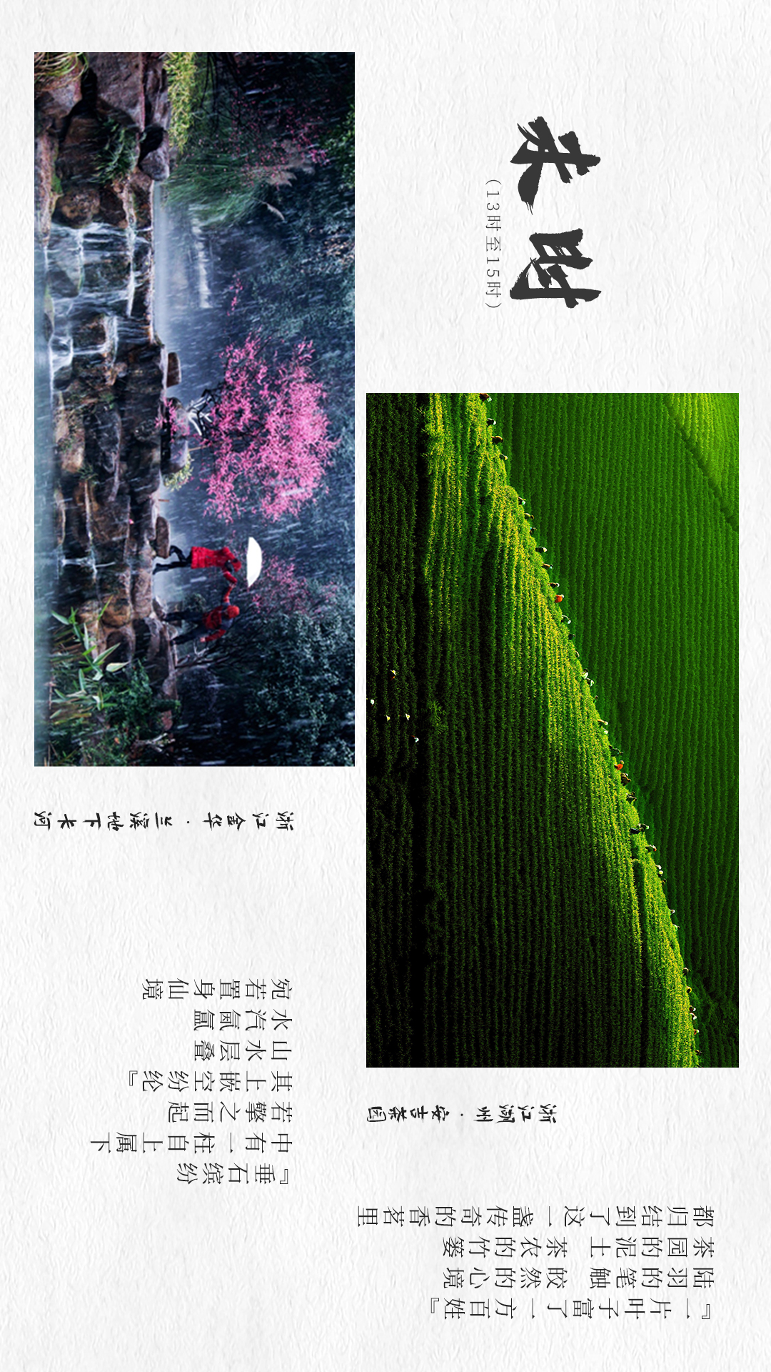 “云散日朗,人意山光,俱有喜態(tài)?!痹诘?3個“中國旅游日”來臨之際,我們送您12張“明信片”,帶您領略屬于“詩畫江南、活力浙江”的12時辰。