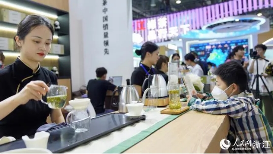 5月20日,第五屆中國國際茶葉博覽會(huì)在杭州開幕,市民、游客們前來體驗(yàn)一場(chǎng)“茶的盛宴”。人民網(wǎng)記者 郭揚(yáng)攝