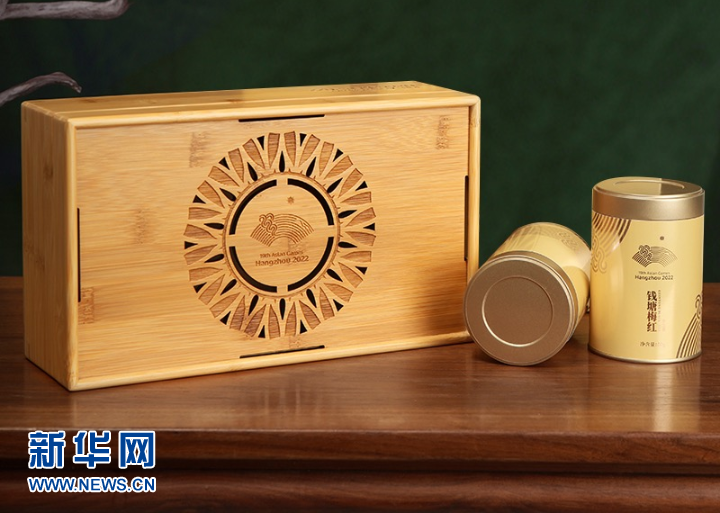 融入了亞運(yùn)元素的茶葉禮盒。新華網(wǎng)發(fā)