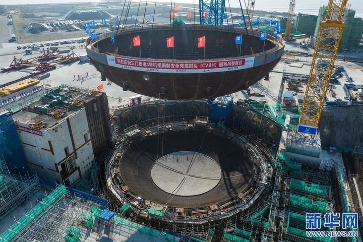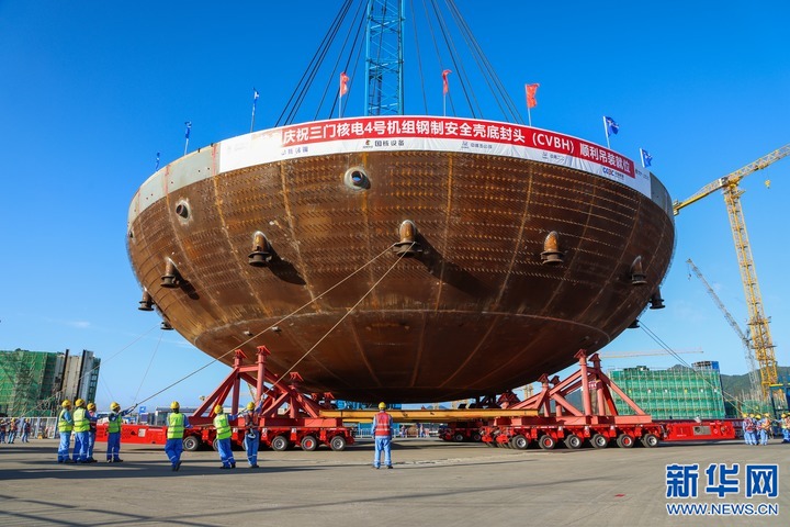 5月29日,在浙江省臺州市三門縣,三門核電二期工程4號機組核島鋼制安全殼底封頭順利吊裝就位。這是4號機組核島反應堆廠房吊裝的首個大型模塊,標志著該廠房主體結構施工開始。三門核電二期工程4號機組于3月22日開工,整個二期工程建成投產后,一、二期裝機總容量將達到500萬千瓦,年發(fā)電量預計可達到400億千瓦時。