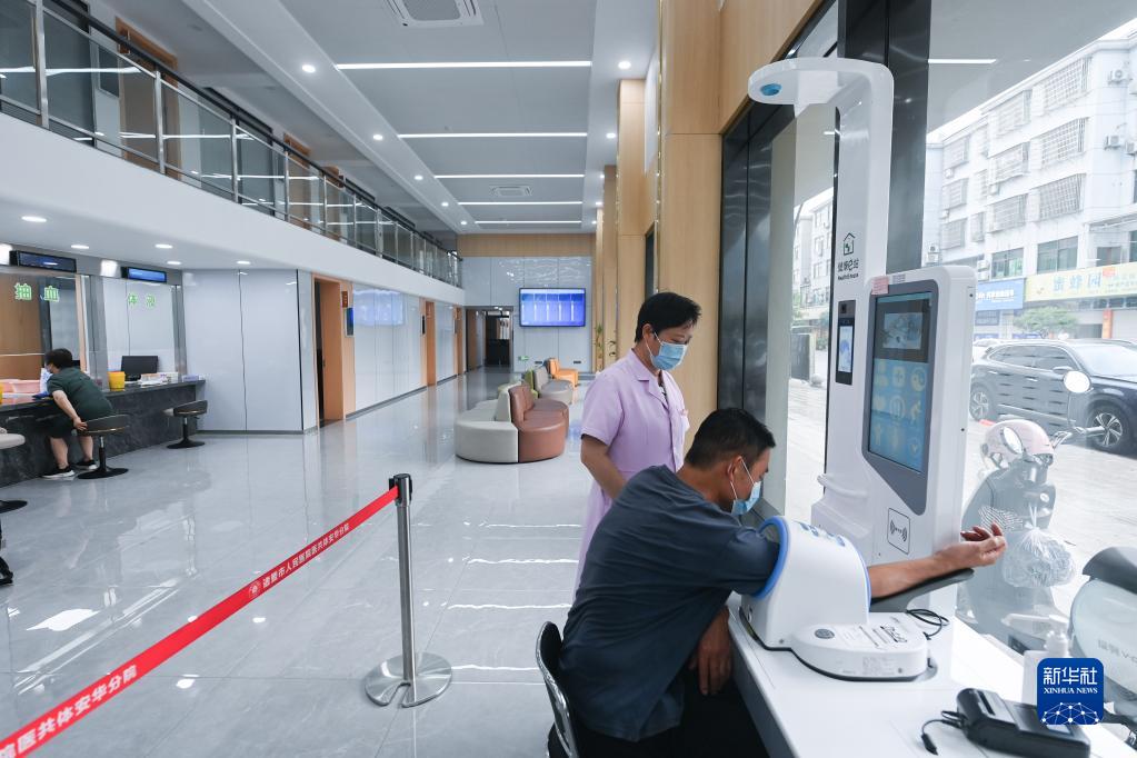 6月7日,在諸暨市安華鎮(zhèn)衛(wèi)生院剛改建完成的健康服務(wù)中心內(nèi),居民在進(jìn)行體檢。