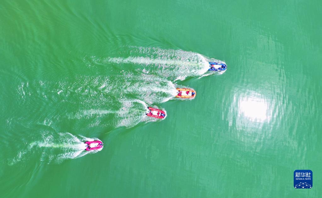 當(dāng)日,在浙江省湖州市長(zhǎng)興縣合溪水庫(kù)煤山段,煤山鎮(zhèn)組織黨員干部、應(yīng)急管理隊(duì)員、志愿者組成應(yīng)急救援隊(duì),開展防汛減災(zāi)應(yīng)急綜合實(shí)戰(zhàn)演練,通過(guò)沖鋒舟編隊(duì)、水上打撈、水上救援等課目訓(xùn)練,增強(qiáng)防汛應(yīng)急處置和水上搶險(xiǎn)救災(zāi)能力。