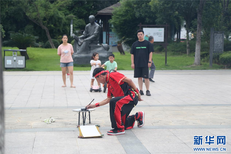 傍晚时分,在海盐县武原街道朝阳路的广场上,经常可以看到孙凯表演霹雳舞。书法与霹雳舞招牌动作丝滑衔接,围观市民纷纷拍手叫好。