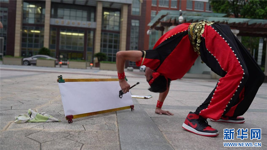 孙凯倒立写字。新华网发