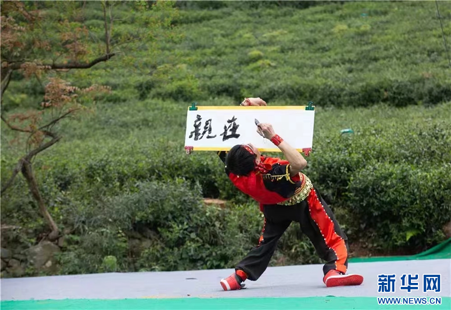 孙凯在茶山表演霹雳舞。新华网发