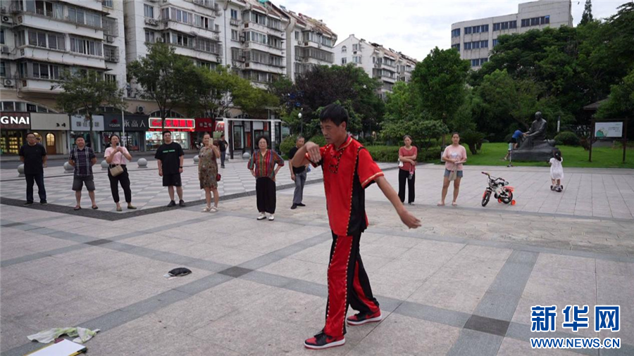 市民驻足观看孙凯表演霹雳舞。新华网发