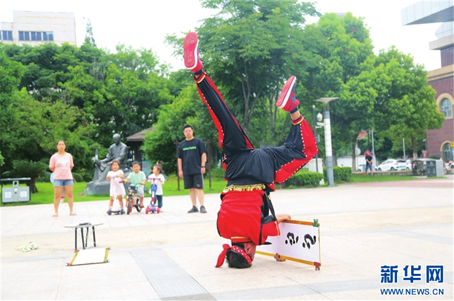 孙凯表演霹雳舞。新华网发