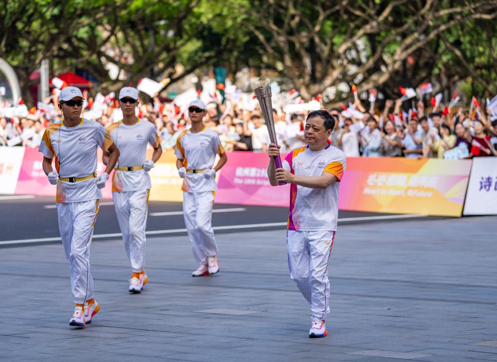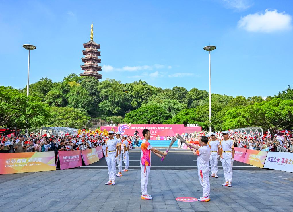 15日,杭州第19届亚运会火炬传递来到千年商港温州。当亚运圣火从第一棒火炬手温州籍射击名将朱启南传递到南存辉手中,体育精神和企业家精神在这一刻交融辉映。