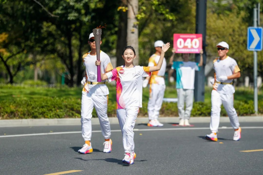 张澎萱是浙江传媒学院一名学生,今年4月,她正式参与到亚运会颁奖礼仪志愿者的训练中,凭借刻苦的训练及出色表现,在老师的推荐鼓励之下,张澎萱参加了亚运火炬手的选拔并顺利入选。“当时的心情特别激动,签承诺书的时候都是一笔一划的,签得特别认真。”张澎萱说。