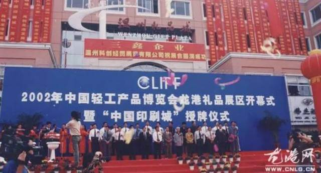 2002年中国轻工业产品博览会龙港礼品展区开幕式暨“中国印刷城”授牌仪式。新华网发 龙港市委宣传统战部供图