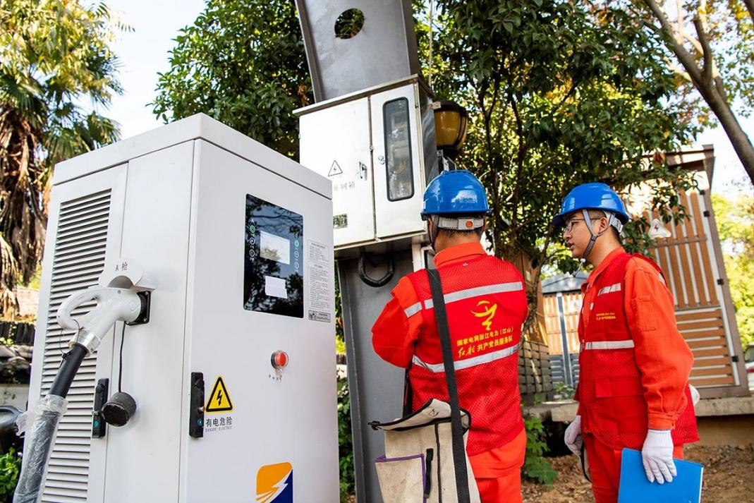 供电员工在大陈景区停车场检查光储充设备运行情况。新华网发 王刚 摄