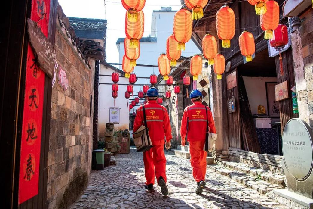 2022年,大陈村入选浙江全省首批“未来乡村”,与之配合的电力服务也不断迭代。在大陈景区停车场内,充电站车棚顶的光伏发电板与储能装置相互配合,为游客带来智能低碳的充电服务;连片的古宅保护区内,智能微型断路器全天候监测着用电设备,降低古建筑的电气火灾风险;在大陈“红船·光明驿站”,乡村服务网格与供电所服务网格有机融合,村民们办电不出户、问题不出村。