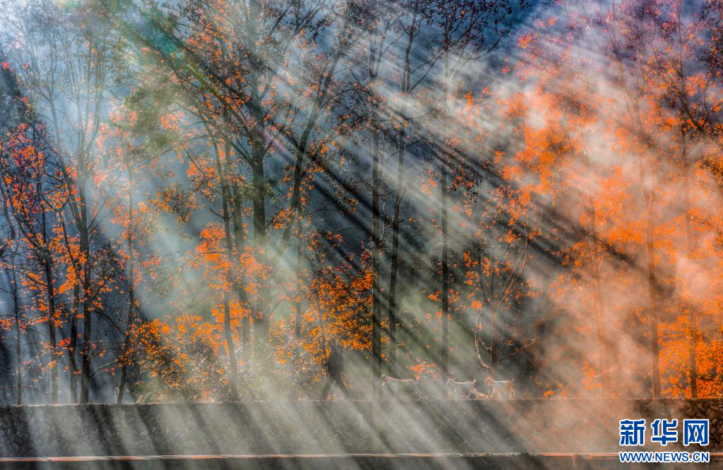 阳光穿过枫叶的间隙,洒下斑驳的光影。新华网发 永嘉县委宣传部供图
