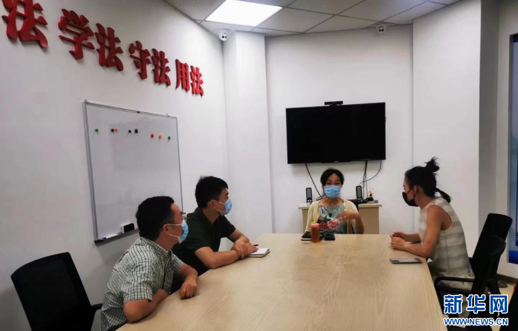 潘美华在调解室为当事人双方调解矛盾。新华网发