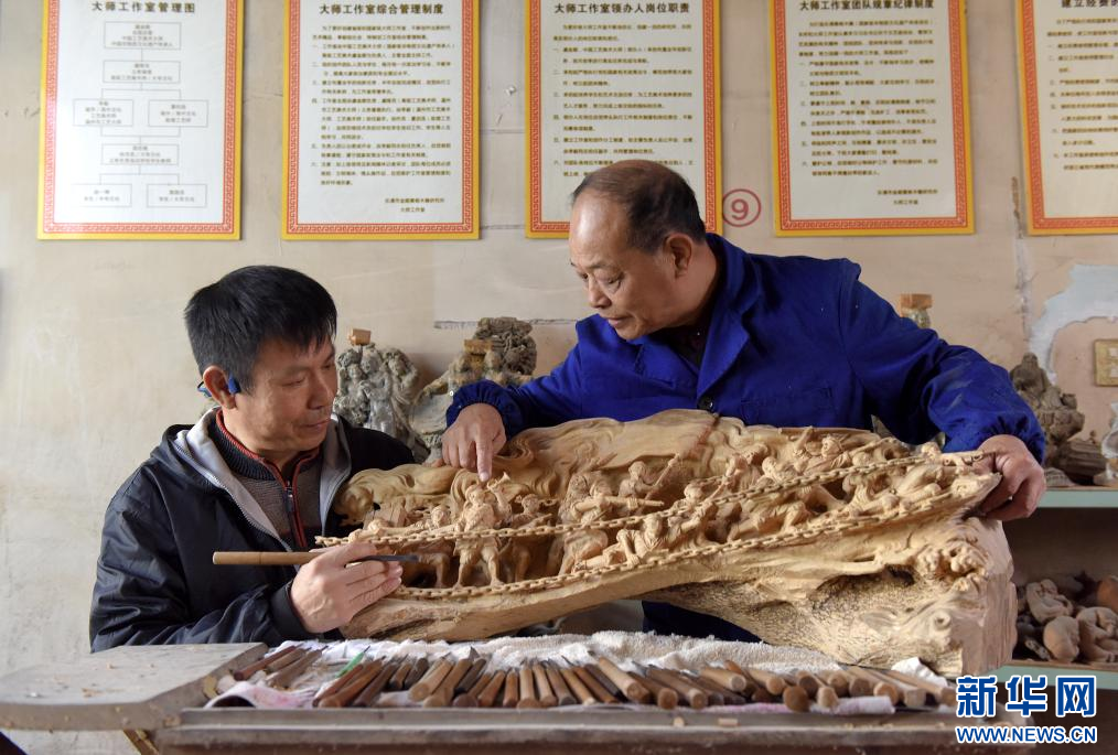 乐清黄杨木雕是我国木雕艺术中的主要种类之一,属于小型圆雕艺术,因取材黄杨木而得名,2006年被列入首批国家级非物质文化遗产名录。身为国家级非物质文化遗产(黄杨木雕项目)代表性传承人,虞金顺铭记传承的责任,在他的影响下,他的弟弟虞定良、徒弟吴尧辉均已是中国工艺美术大师。兄弟、师徒皆“大师”,被传为美谈。