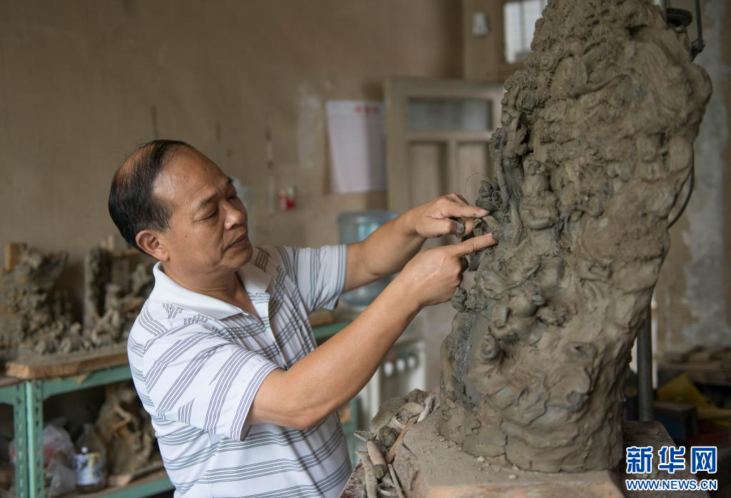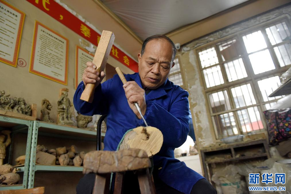 虞金顺在塑制泥稿。新华网发 受访者供图