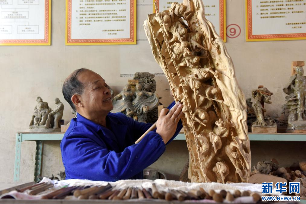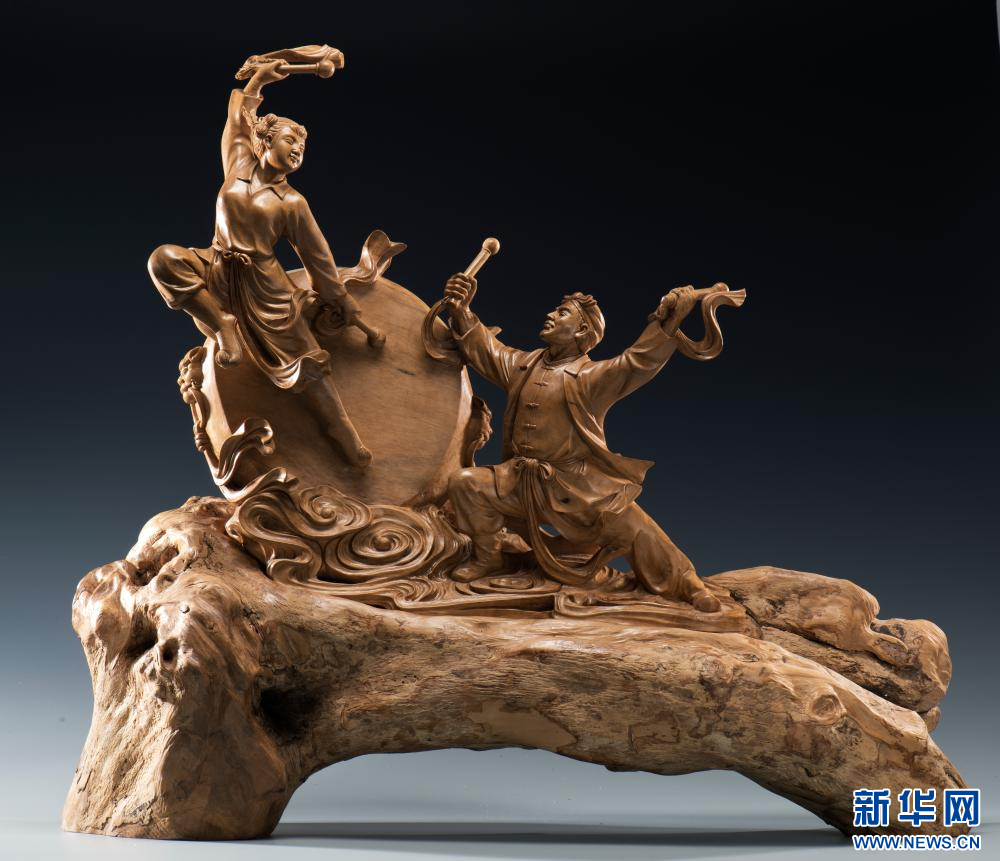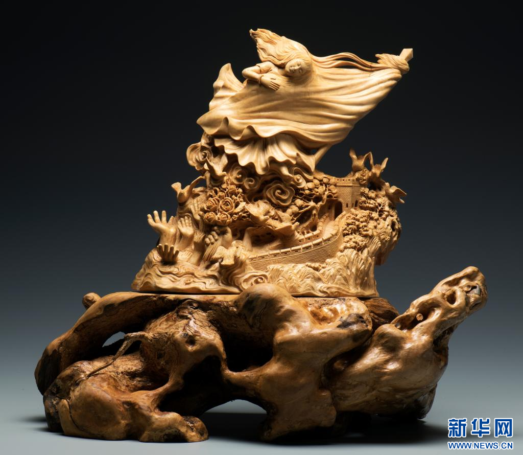 虞金顺黄杨木雕作品《中国梦》。新华网 受访者供图