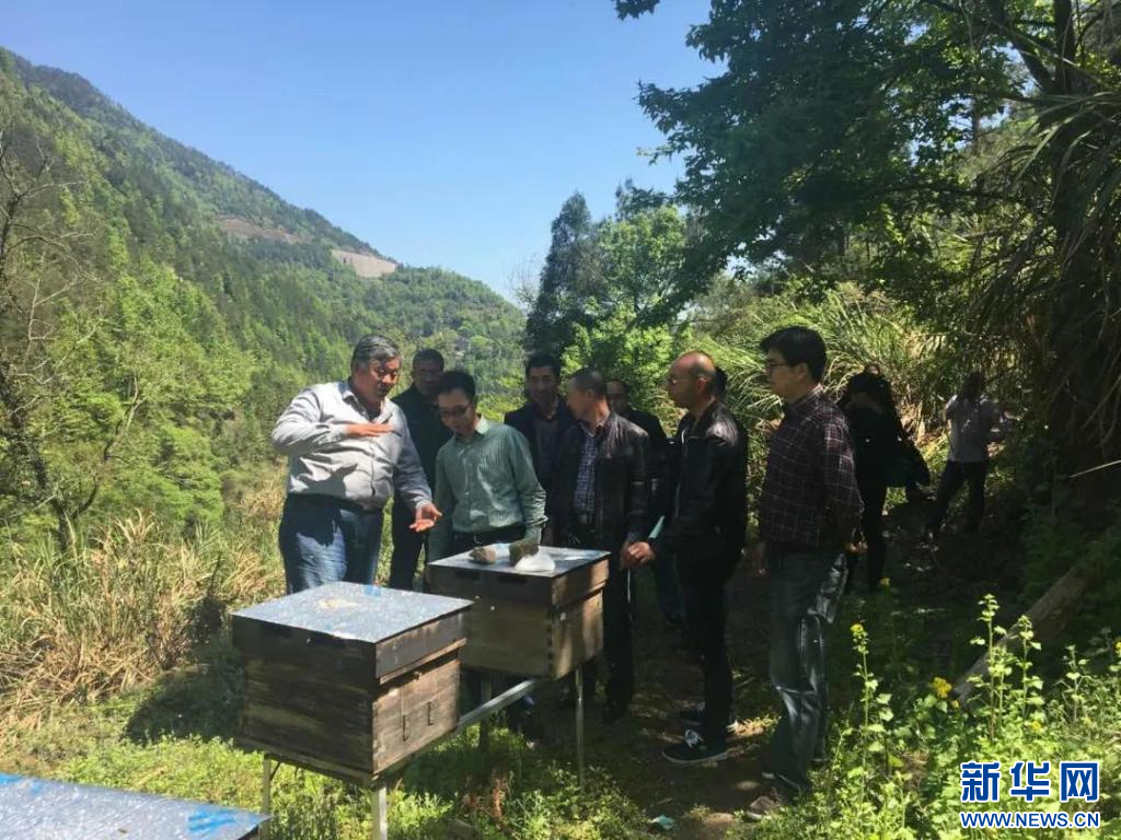 “蜜界达人”王友明(左一)在为蜂农讲解中锋养殖技术。新华网发