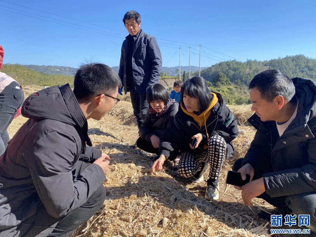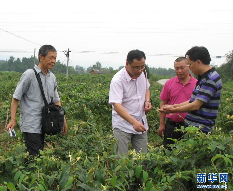 被农户称呼为“东南药先生”的科技特派员陶正明(左二)在山间查看中药材种植状况。新华网发