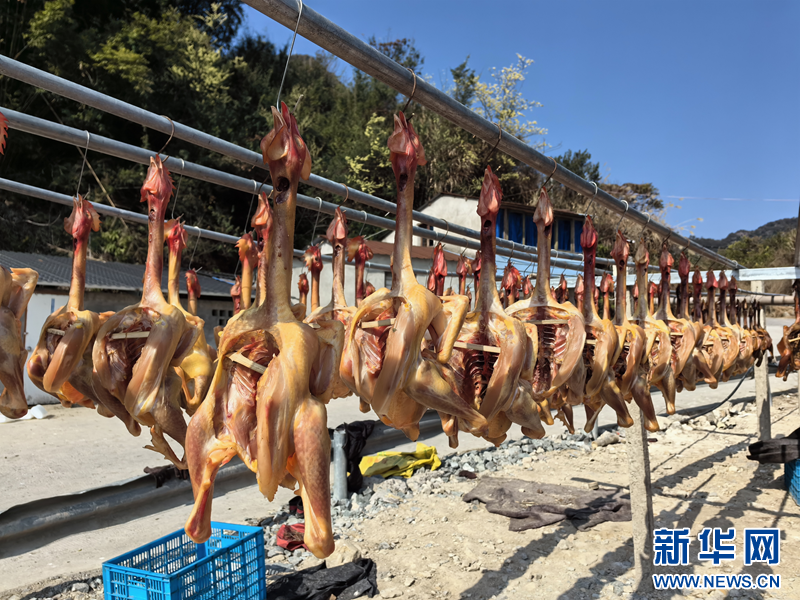 新华网杭州2月7日电 随着春节脚步的临近,在浙江省温州市鹿城区藤桥镇,几乎家家户户的屋前檐下都挂出了等待风干的熏鸡,年味也随之弥漫。藤桥熏鸡是让温州人垂涎的家乡味道,也是当地打开共富之门的“金钥匙”。