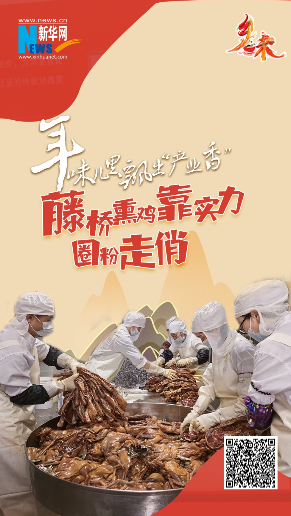 不仅如此,藤桥镇还通过雅漾村“共享社·幸福里”创建,打造“共享直播间”,向村民提供培训服务并免费开放使用,培养了一支近50人的本土“农播”达人,带动村民开展“田间直播”“粉丝团购”等活动。与此同时,当地还与20余位头部“网红大咖”、知名主播达成重点合作关系,全力开辟网络销售新通道。2023年,藤桥熏鸡通过直播带货累计完成销售超800万元,网络零售总额突破2.5亿元。