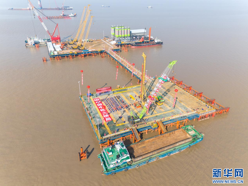 近日,在通苏嘉甬高铁杭州湾大桥建设现场,工人们正如火如荼地施工。作为国家“八纵八横”高速铁路网沿海铁路客运通道的重要组成部分,通苏嘉甬高铁预计2027年通车。