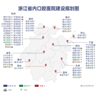 截止目前,杭州口腔医院在浙江省内已开设59家分院,并有一些分院还在建设中。医院经营面积共计超22万平方米,牙椅约3000张,医院员工近5000人,医院医生近1800名、其中中高级职称医生近1000人,目前年综合门诊300余万人次。后续医院将增加西溪谷分院和紫金港城市发展大厦头部医学中心。