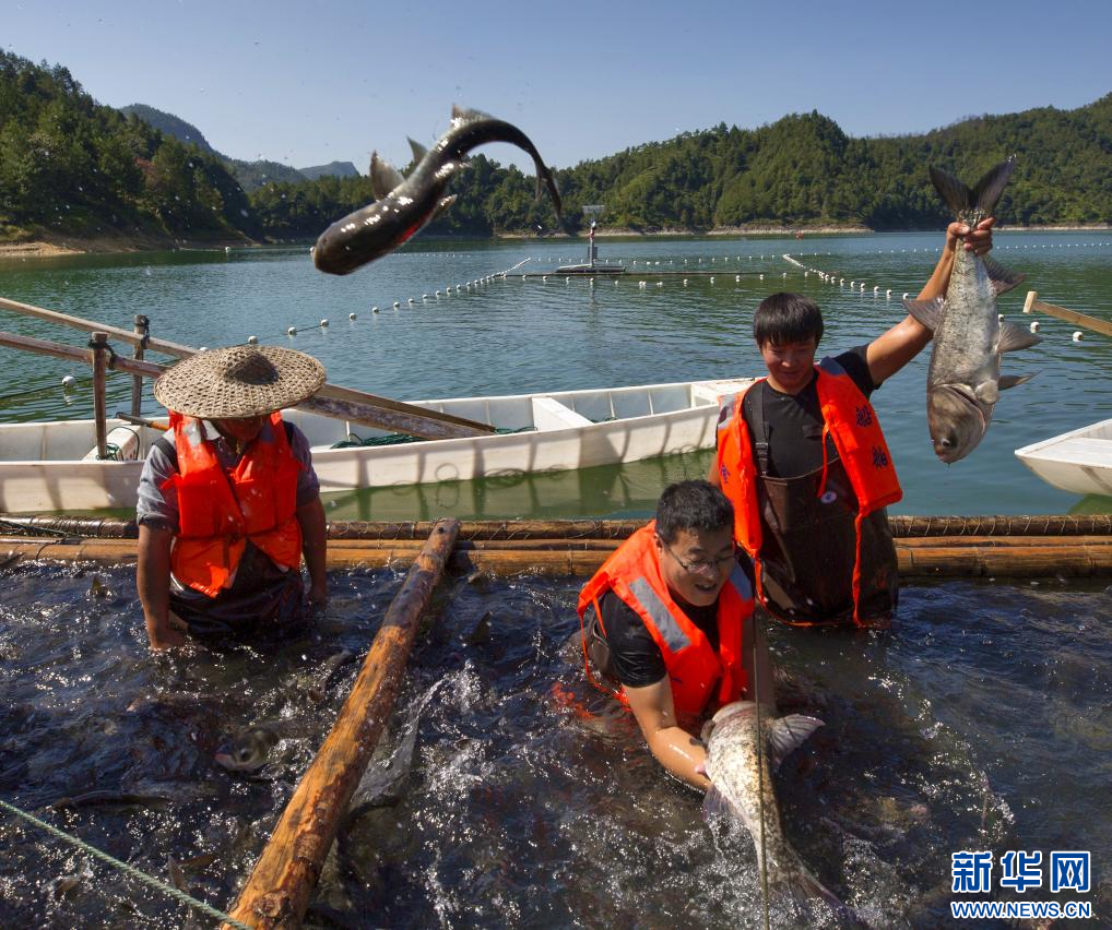 珊溪水库有机鱼捕捞。新华网发 温州市公用集团供图