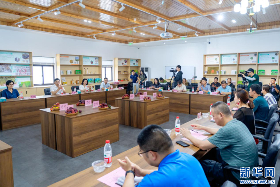 专家对参赛檇李进行打分评比。新华网发