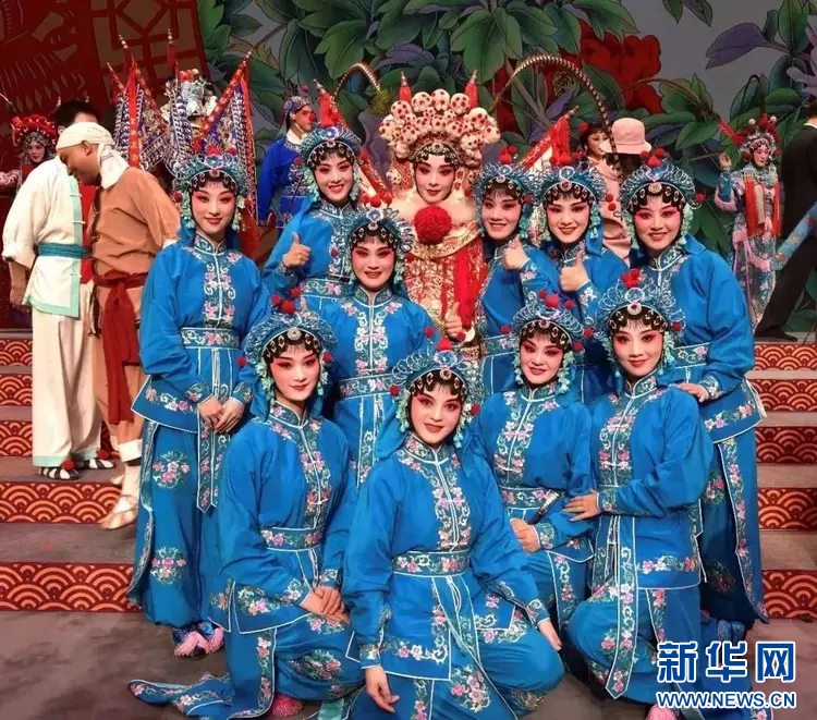 2019年新年戏曲晚会戴丽霜(后排右二)参演婺剧《锦绣梨园》。新华网发