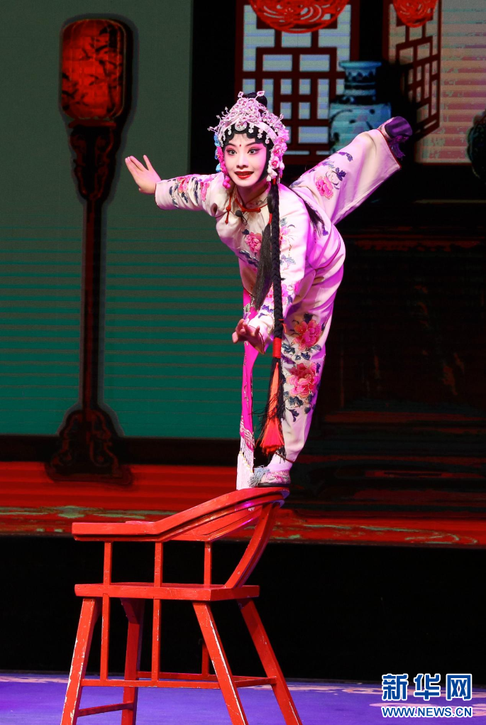 麻锡妃演出婺剧《姐妹易嫁》。新华网发
