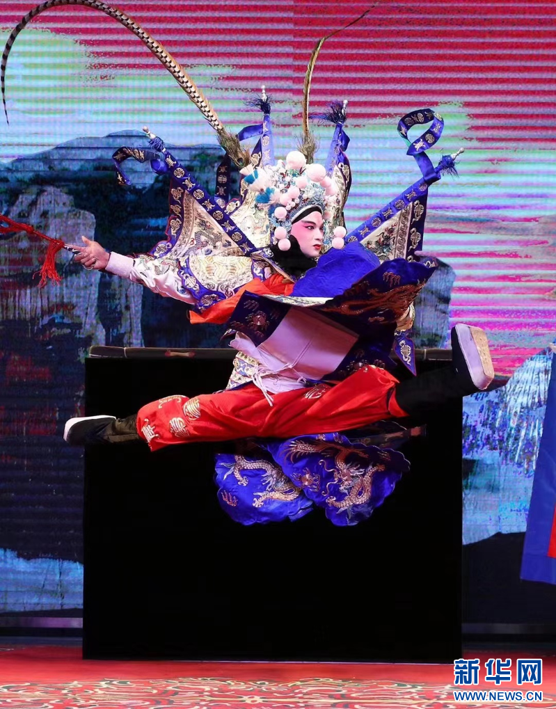 李重均演出婺剧《吕布试马》。新华网发