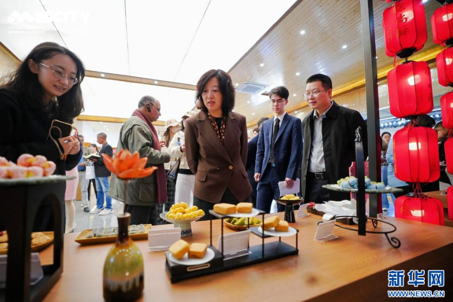 嘉宾品尝华中社区的传统手工糕点。新华网发 郑人豪 摄