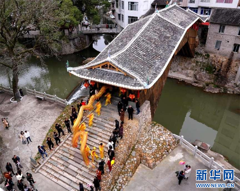 薛宅桥上的廊桥龙舞。新华网发 泰顺县委宣传部 供图