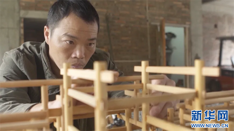曾家快用传统榫卯结构复刻廊桥。新华网发 泰顺县委宣传部 供图